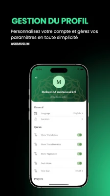 Profil Utilisateur et Paramètres : Personnalisez votre expérience en ajustant les méthodes de calcul des prières, en choisissant votre madhhab, et bien plus encore.