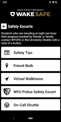 WAKE SAFE is the official safety app of Wake Forest University. It is the only app that integrates with Wake Forest University's safety and security systems. WFU Police has worked to develop a unique app that provides students, faculty and staff with added safety on the Wake Forest University campus. The app will send you important safety alerts and provide instant access to campus safety resources.